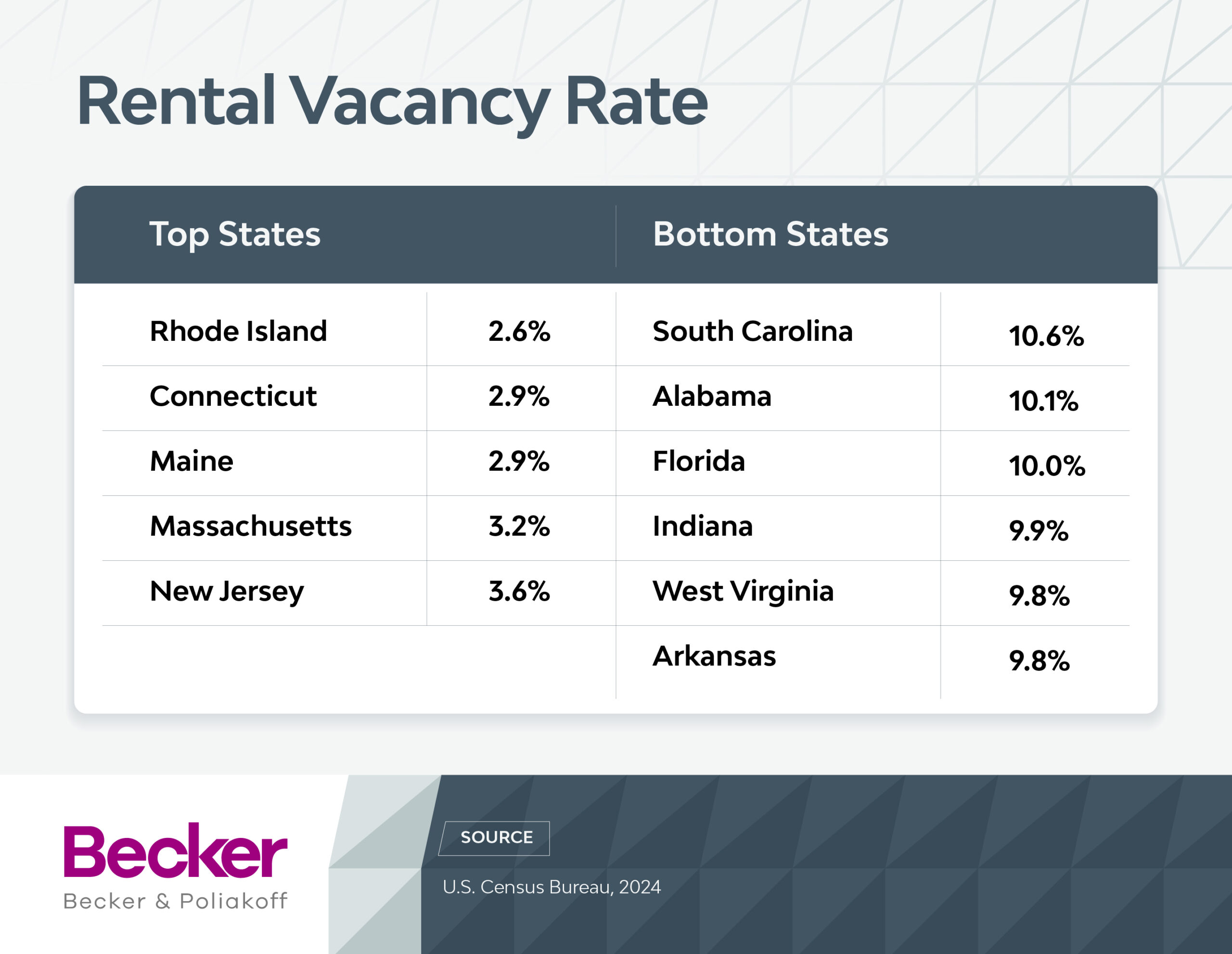 - Rental vacancy rate (U.S. Census Bureau, 2024)